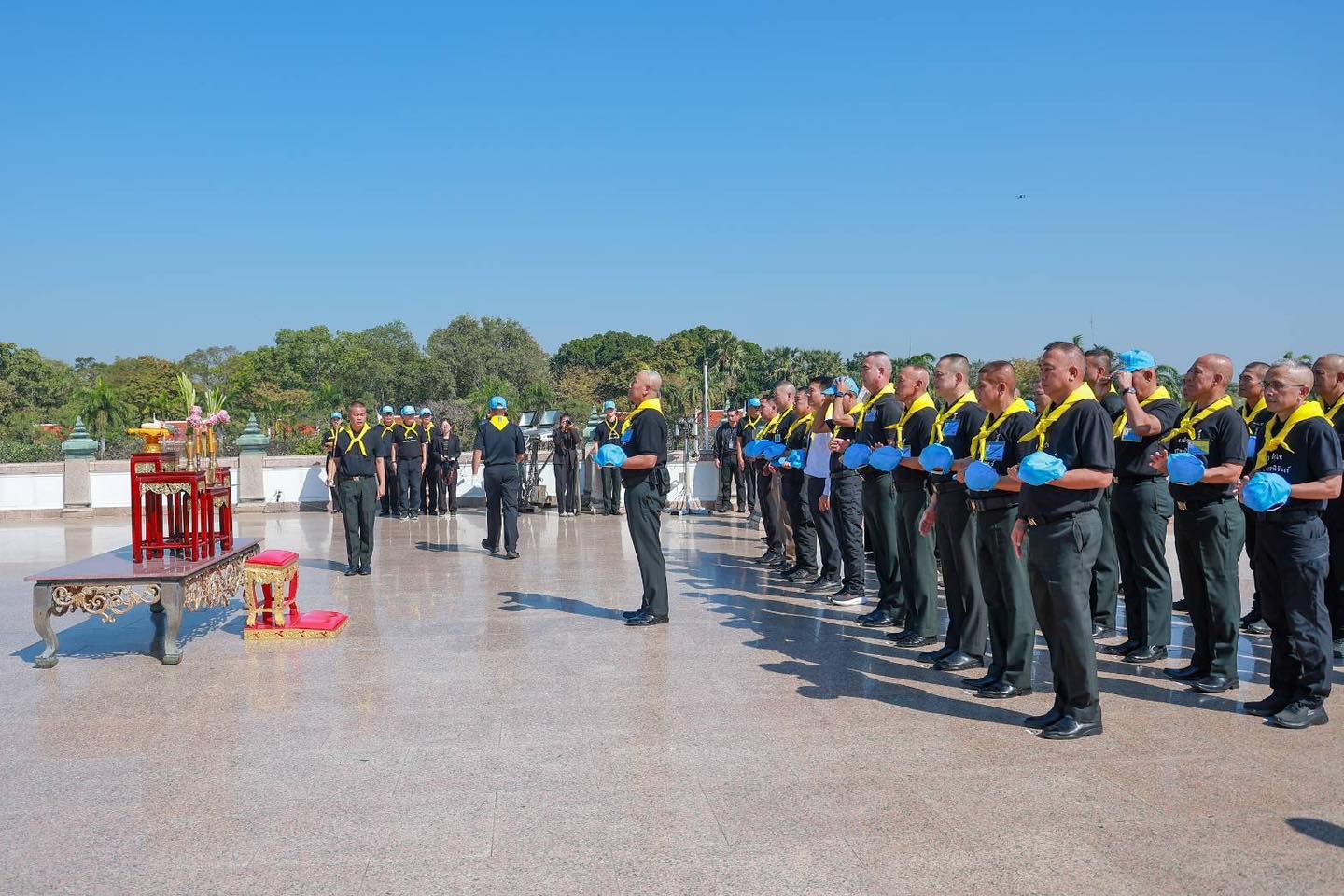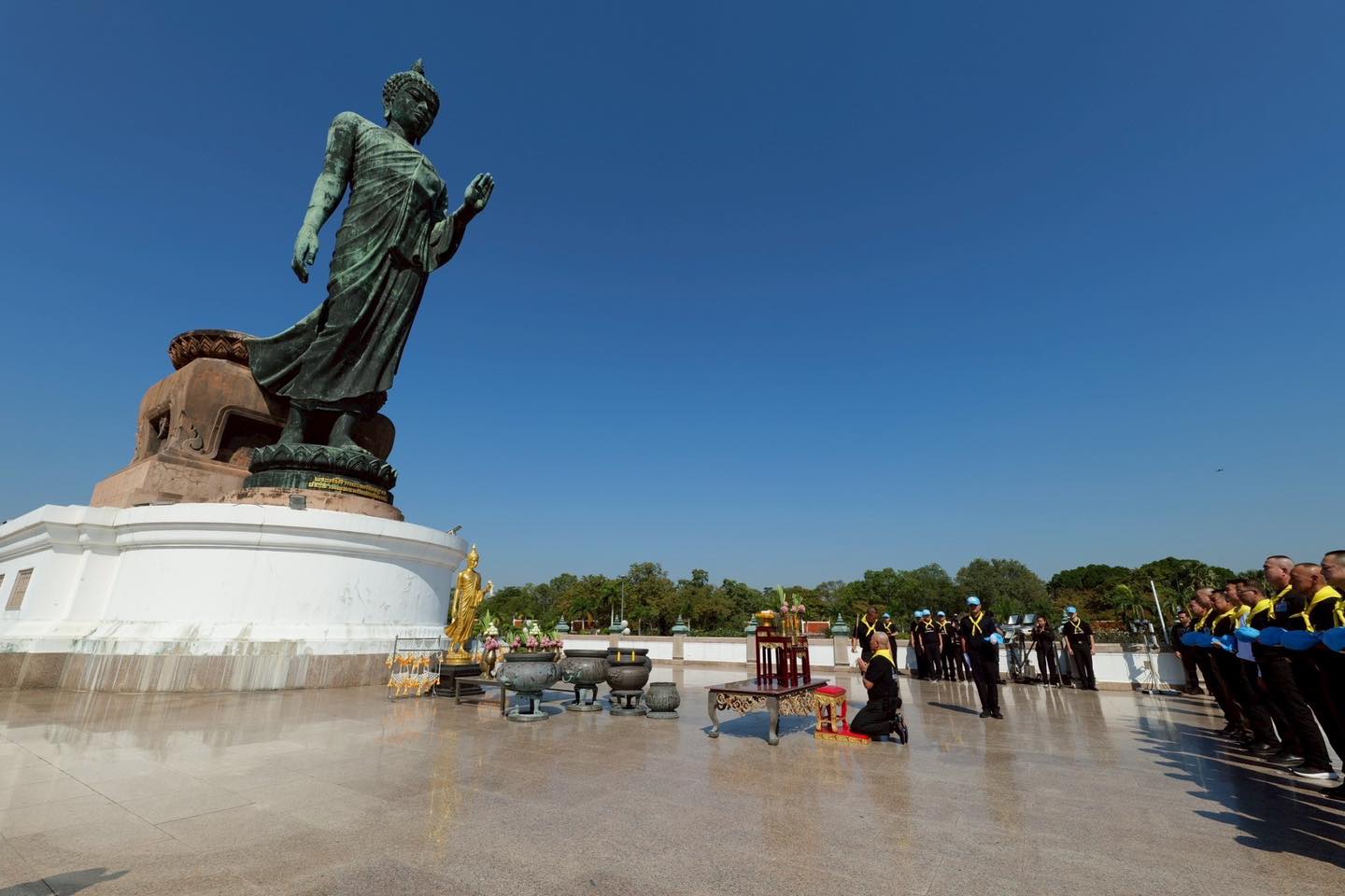 พระบรมราชินีนาถ พระบรมราชชนนีพันปีหลวง โดยมี พลโท วัชรินทร์ มุทะสินธุ์ ผู้บัญชาการหน่วยบัญชาการรักษาดินแดน และ พลตรี เสฏฐนันท์ แสงรัตนทองคำ ผู้บัญชาการศูนย์การนักศึกษาวิชาทหาร ให้การต้อนรับ ณ ลานหน้าองค์พระศรีศากยะทศพลญาณ ประธานพุทธมณฑลสุทรรศน์ พุทธมณฑล จ.นครปฐม