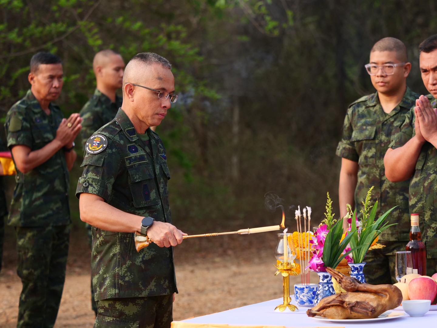 พลโท วัชรินทร์ มุทะสินธุ์ ผู้บัญชาการหน่วยบัญชาการรักษาดินแดน กรุณาเป็นประธานในพิธีบวงสรวงพระบรมราชานุสาวรีย์ รัชกาลที่ 6 และสักการะสิ่งศักดิ์สิทธิ์ ในการปิดกองอำนวยการฝึกภาคสนามนักศึกษาวิชาทหาร ประจำปีการศึกษา 2568 ในการนี้มีคณะผู้บังคับบัญชา และครูฝึก พร้อมด้วยนักศึกษาวิชาทหาร เข้าร่วมพิธีฯ อย่างพร้อมเพรียง ณ ค่ายฝึกนักศึกษาวิชาทหารเขาชนไก่ จังหวัดกาญจนบุรี