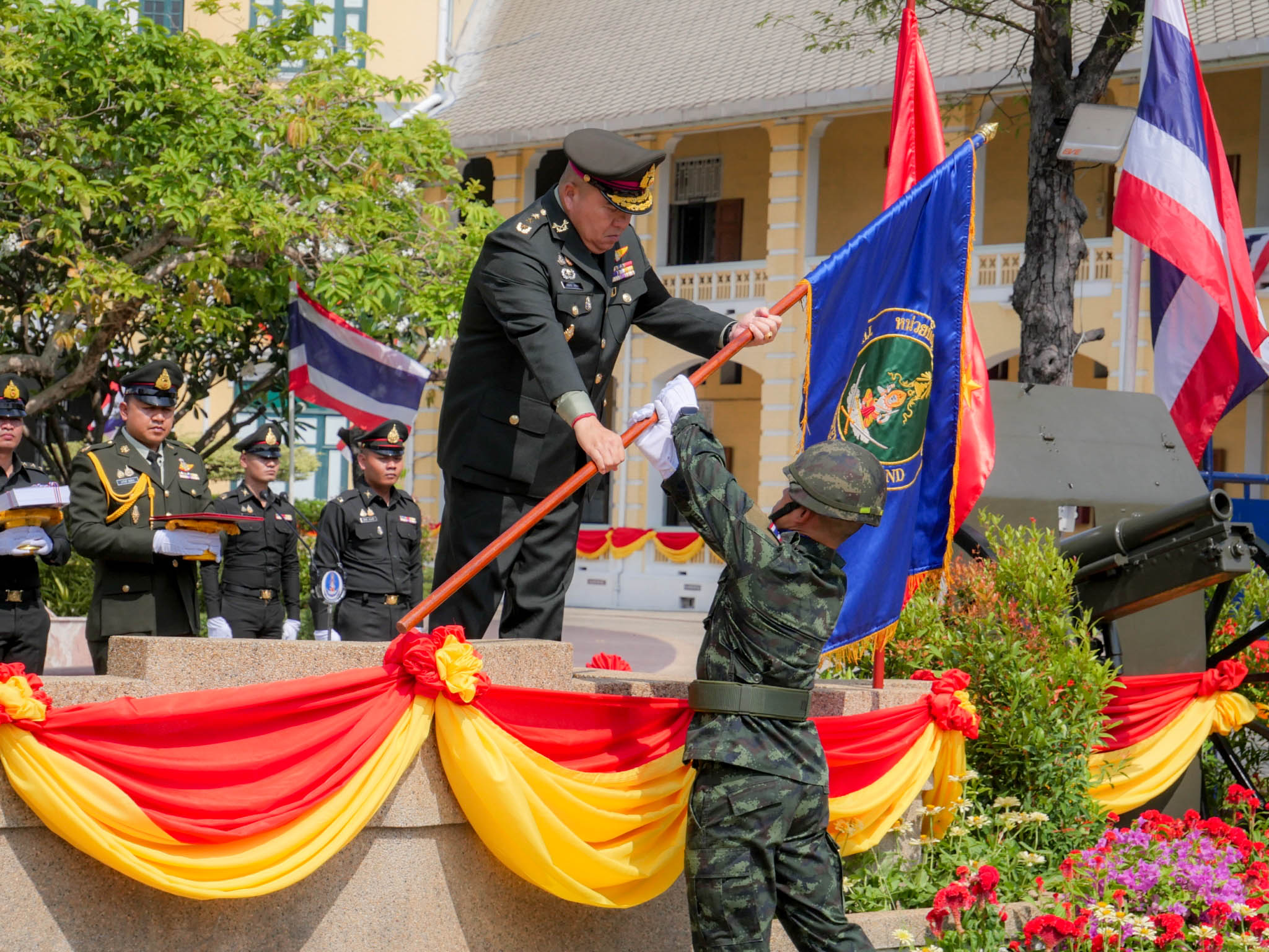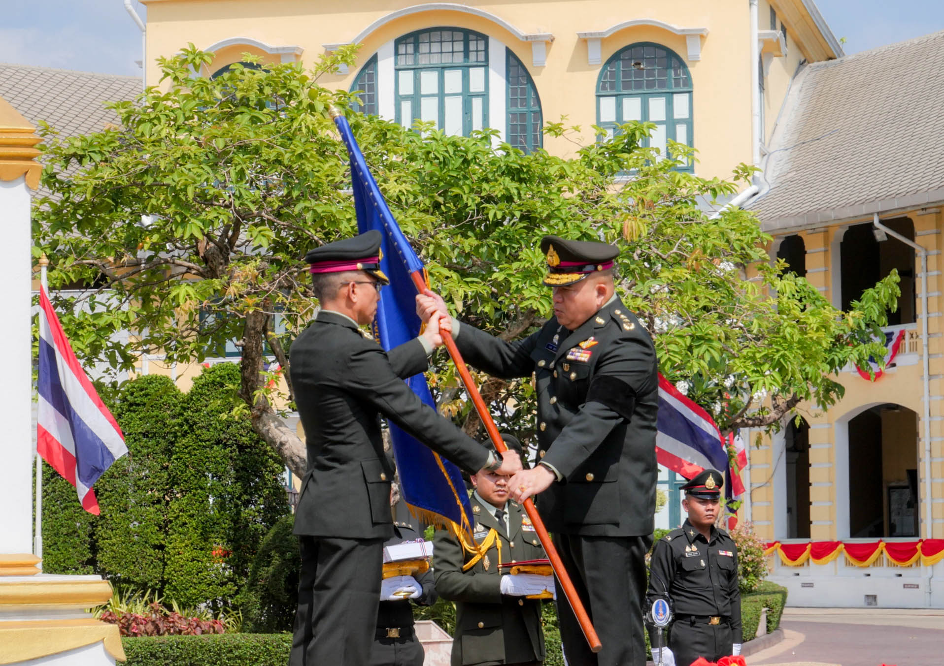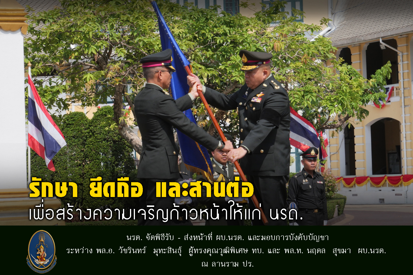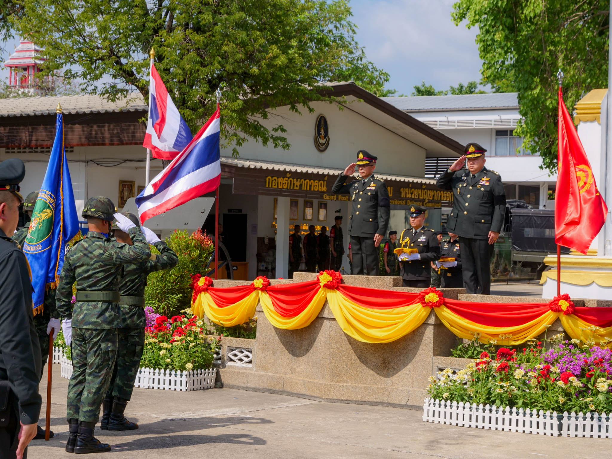 หน่วยบัญชาการรักษาดินแดน จัดพิธี รับ-ส่ง หน้าที่ ผู้บัญชาการหน่วยบัญชาการรักษาดินแดน และส่งมอบการบังคับบัญชา ระหว่าง พลเอก วัชรินทร์ มุทะสินธุ์ ผู้ทรงคุณวุฒิพิเศษกองทัพบก และ พลโท นฤดล สุขมา ผู้บัญชาการหน่วยบัญชาการรักษาดินแดน โดยมีข้าราชการและกำลังพลเข้าร่วมพิธีอย่างพร้อมเพรียง บรรยากาศเป็นไปอย่างเรียบร้อยตามแบบธรรมเนียมทหาร ณ หน่วยบัญชาการรักษาดินแดน