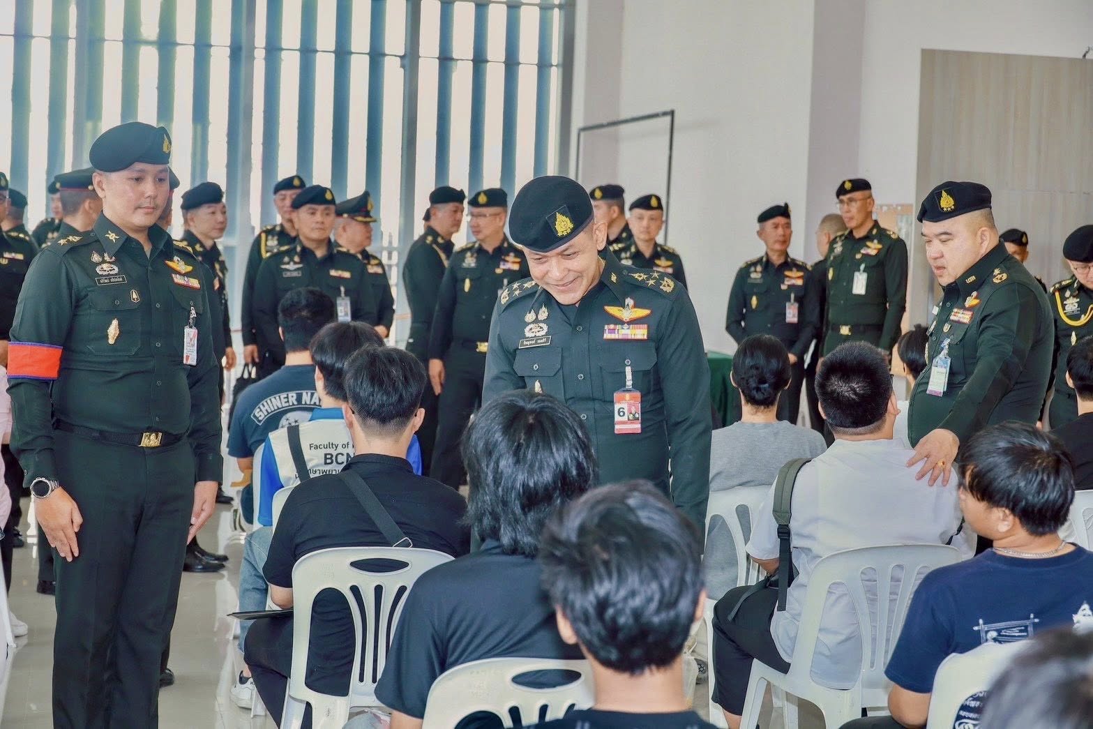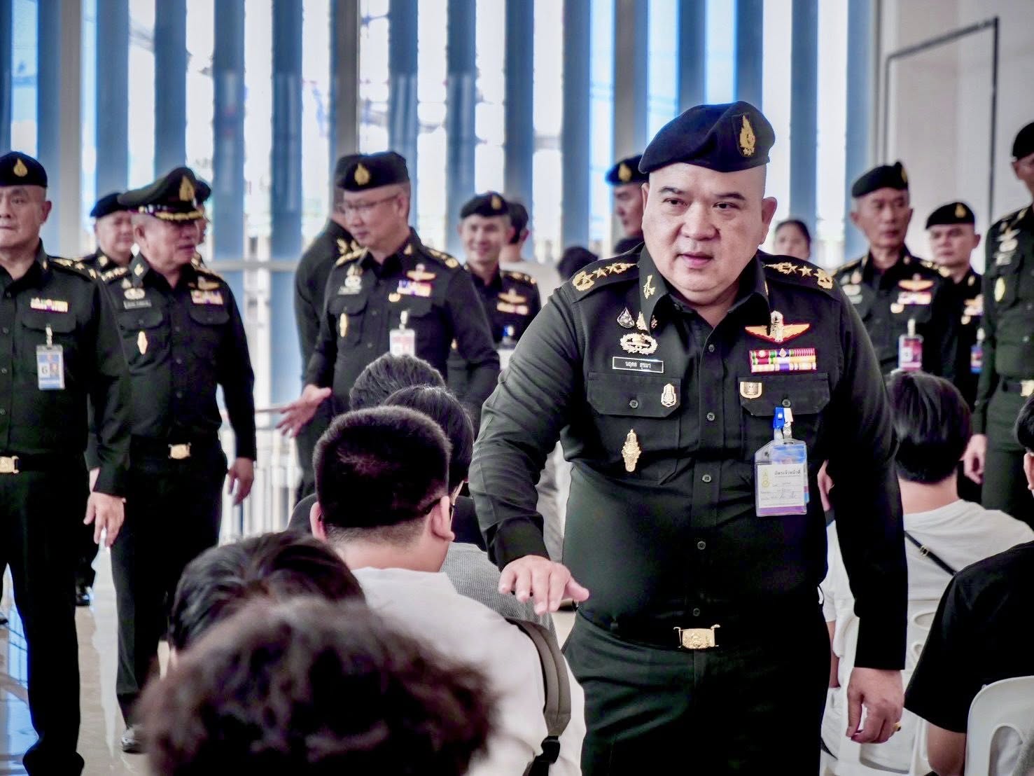 พลโท นฤดล สุขมา ผู้บัญชาการหน่วยบัญชาการรักษาดินแดน และคณะให้การต้อนรับ พลเอก พนา แคล้วปลอดทุกข์ ผู้บัญชาการทหารบก พร้อมคณะ ในโอกาสเดินทางสังเกตการณ์ตรวจเลือกทหารกองเกินเข้ารับราชการทหารกองประจำการ ประจำปี 2569 ณ ศูนย์การค้าเซ็นทรัล เวสต์เกต ตำบลเสาธงหิน อำเภอเมืองนนทบุรี จังหวัดนนทบุรี ในการนี้ ผู้บัญชาการทหารบก ได้พบปะพูดคุยอย่างเป็นกันเอง และให้กำลังใจกับน้องๆ ทหารกองเกินที่มาเข้ารับการตรวจเลือกฯ ตลอดจนผู้ปกครองที่มาคอยเป็นกำลังใจให้บุตรหลาน พร้อมทั้งเชิญชวนให้สมัครใจเข้าเป็นทหารกองประจำการ